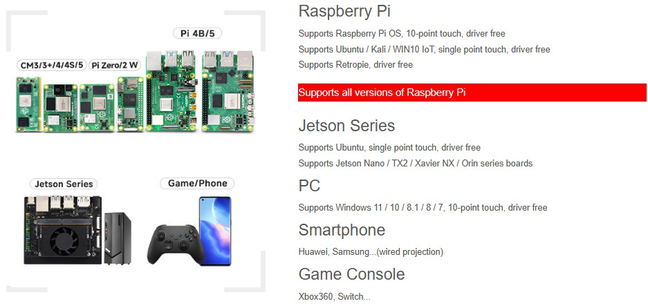 The display supports both Type C and HDMI input, giving it strong compatibility across single board computers and standard desktop systems. The 10 point capacitive touch function enables smooth and accurate interaction for control panels, HMI systems, educational devices, and portable development setups. Support for Raspberry Pi OS, Ubuntu, Kali, Retropie, and Windows platforms makes it a practical choice for developers, engineers, and system integrators looking for a reliable touch display with audio output and on screen adjustment controls.