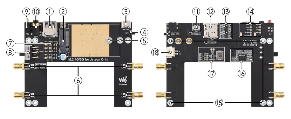 4G Module Expansion Board for Jetson Orin with SIM7600G-H-M.2 Module