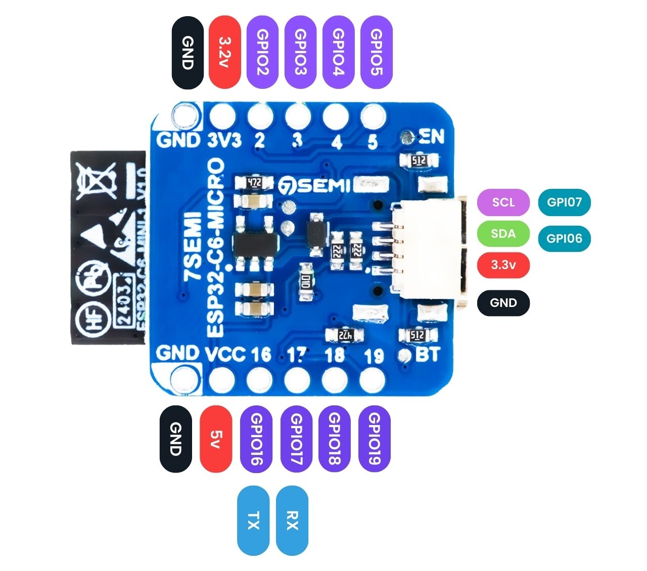 Embrace the flexibility and power of wireless development with the remarkably compact 7Semi ESP32-C6 Mini WiFi Development Board. Designed for seamless integration into your existing Qwiic projects, this board delivers impressive features within its space-saving 1-inch x 1-inch footprint.