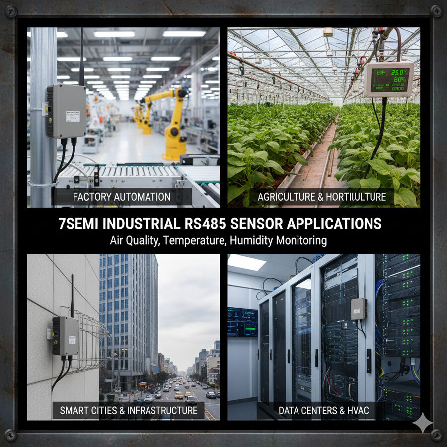Integration is simplified through RS485 Modbus RTU allowing direct connection to PLCs SCADA IoT gateways microcontrollers and building automation systems. The wide 9 to 36V DC supply range and software configurable Modbus address and baud rate make it suitable for industrial control panels remote data loggers HVAC systems agricultural monitoring nodes and environmental stations.