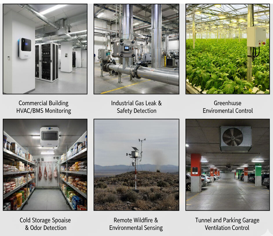 The device includes a two meter cable for flexible mounting and supports software configuration for Modbus address and baud rate. With fast response characteristics and low drift it fits applications such as HVAC control indoor air quality analysis smart agriculture industrial safety automation weather stations and environmental sensing deployments where dependable multi parameter data is required.