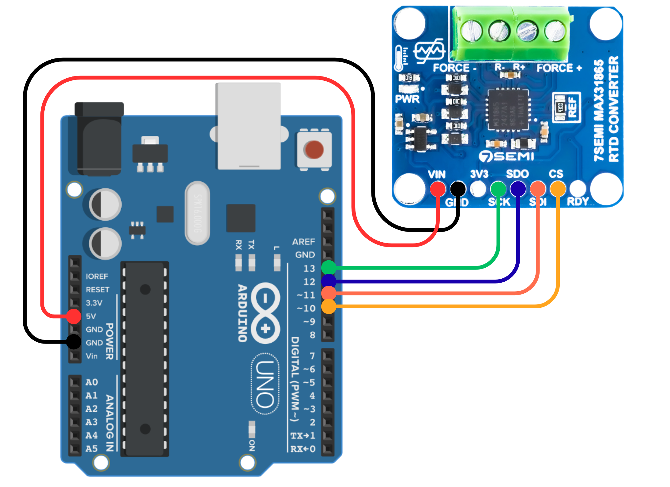 MAX31865 SPI Interface: Seamlessly integrate the breakout board with popular microcontrollers like Arduino and Raspberry Pi for convenient data acquisition and control.