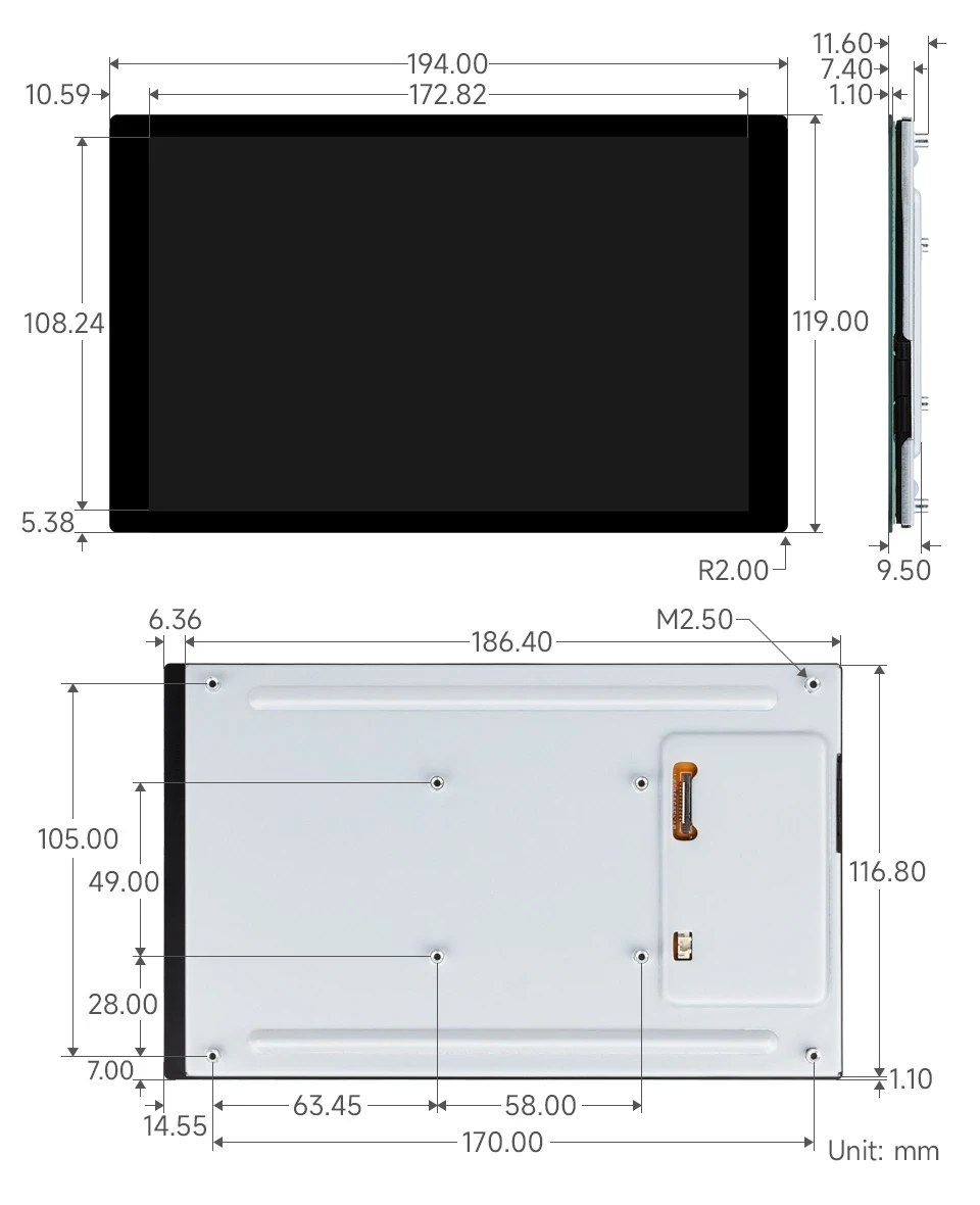 Designed for smooth user interaction, the display features a 10-point capacitive touch panel protected by durable glass, enabling precise multi-touch gestures and long-term reliability. Its compact and slim design makes it suitable for space-constrained applications such as smart control panels, IoT dashboards, portable devices, and automation systems. This display panel is well-suited for developers and engineers seeking a reliable and responsive touch interface for modern embedded projects.