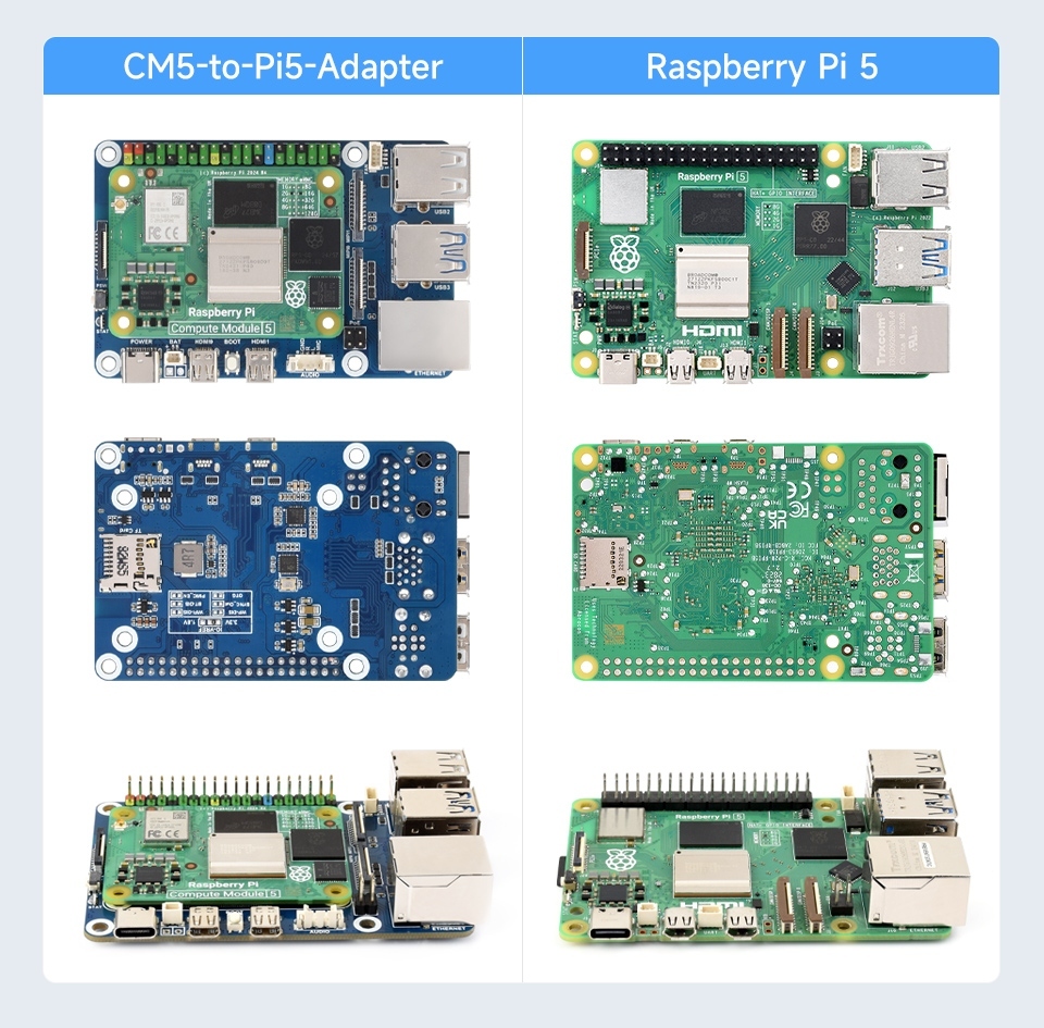Compared to the Raspberry Pi 5, the CM5-to-Pi5-Adapter adds an audio header, supports microphone input