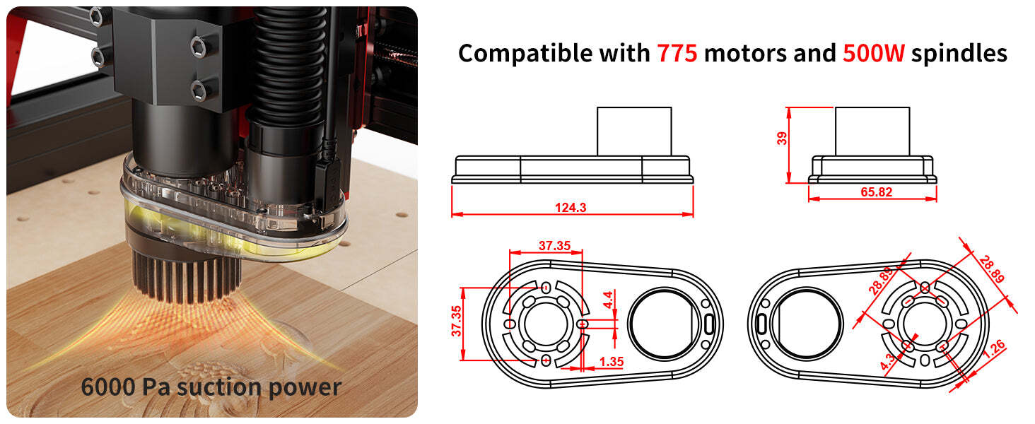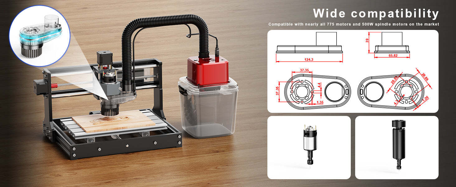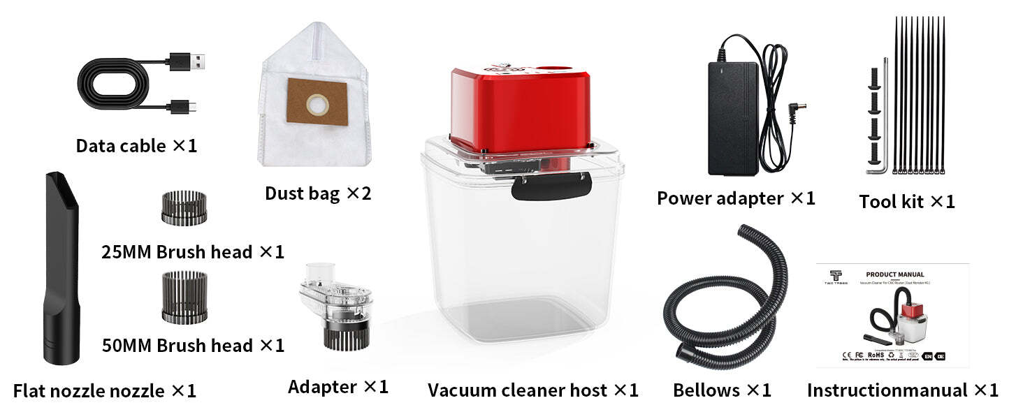 The CNC Vacuum Monster (M1) Kit by Twotrees is the perfect blend of advanced technology and sleek design, engineered to optimize your CNC workspace. Designed with precision and durability, this vacuum cleaner boasts cutting-edge features like a brushless motor, automatic start and stop, and a negative ion generator for superior air purification. Its transparent and high-gloss burgundy plastic shell enhances durability while adding a touch of sophistication to your workspace.