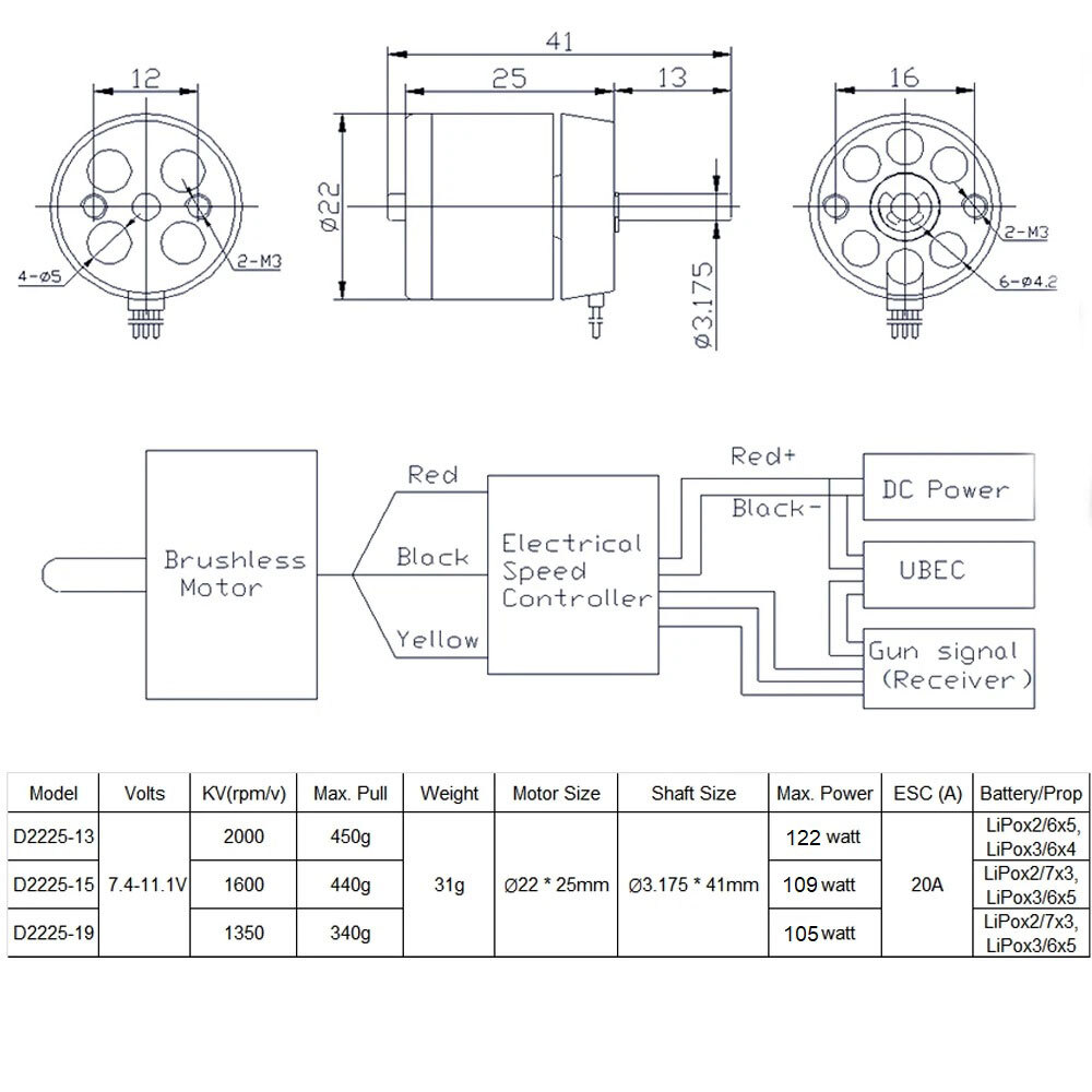 D2225 1350KV Brushless Motor for Fixed-Wing Aircraft, Multicopter and Quadcopter Drones – Stable Thrust with High-Efficiency Performance