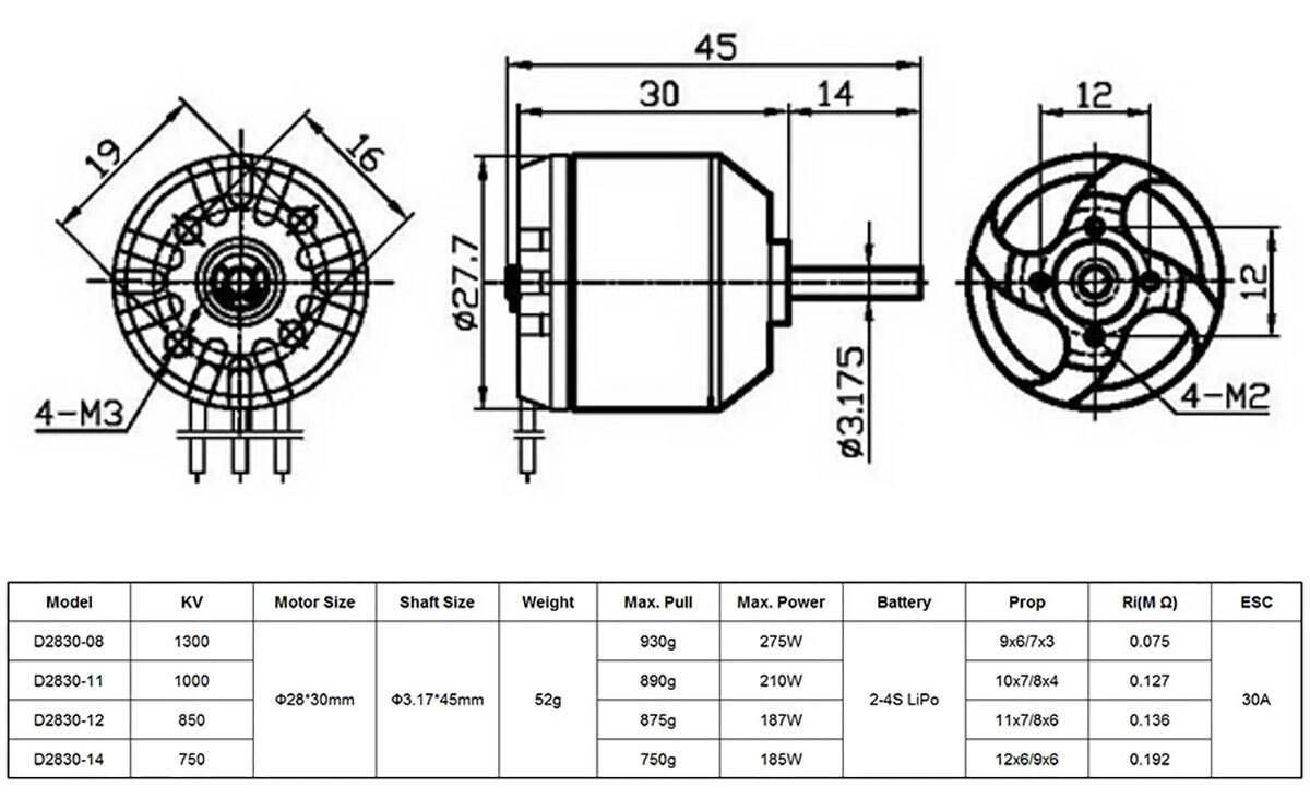 D2830 750KV Brushless Motor for Fixed-Wing Aircraft, Multicopters and Quadcopter Drone Applications