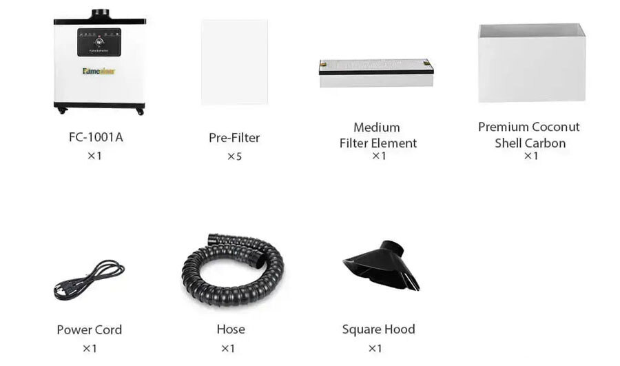 - FC-1001A Main Unit x 1 - Compact and powerful fume extractor engineered for efficient removal of soldering fumes, smoke, and fine particulates.