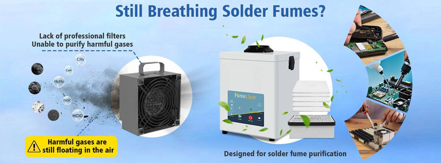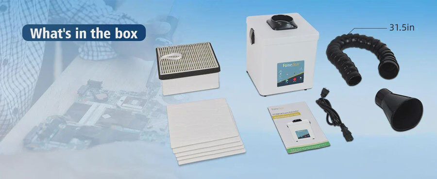 Filters 99.97 percent of fine particles for improved air purification during soldering tasks.