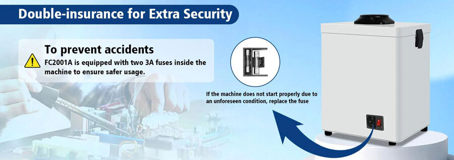 With airflow up to 120 m3/h and 3 speed adjustments, the FC-2001A supports flexible operation based on the intensity of soldering work. The high-efficiency filtration system removes fine particles with 99.97% efficiency, helping maintain a cleaner and safer workspace. Its leak-proof design and noise reduction construction improve user comfort during extended operation, while the built-in fuse protection adds an extra layer of reliability for daily professional use.