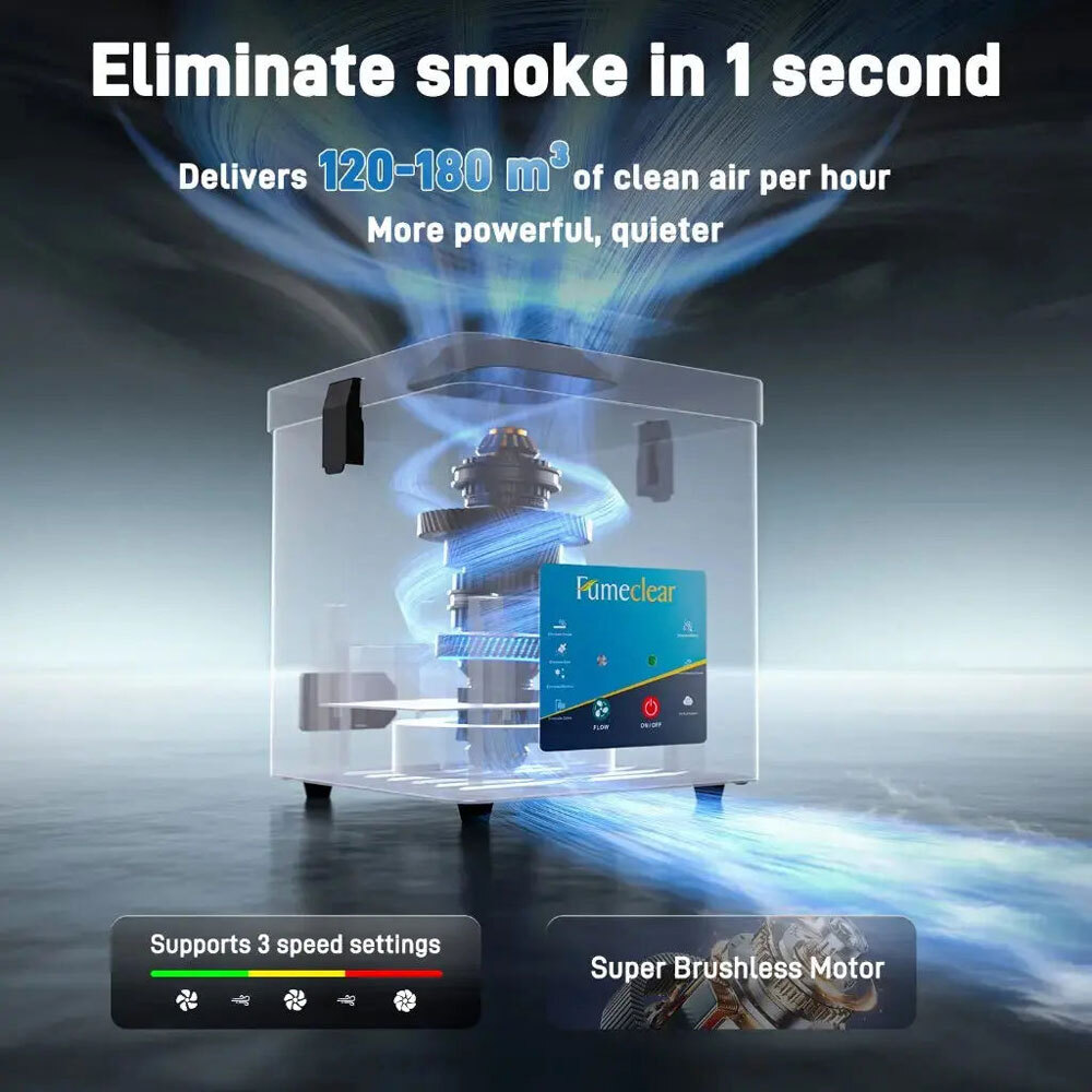 Sealed cover design helps prevent smoke from escaping after it is drawn into the unit.