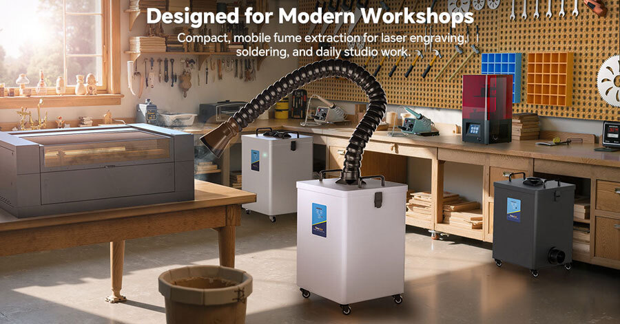 Suitable for soldering, small laser engravers from 10W to 20W, 3D printers, electronics repair, and nail salons.