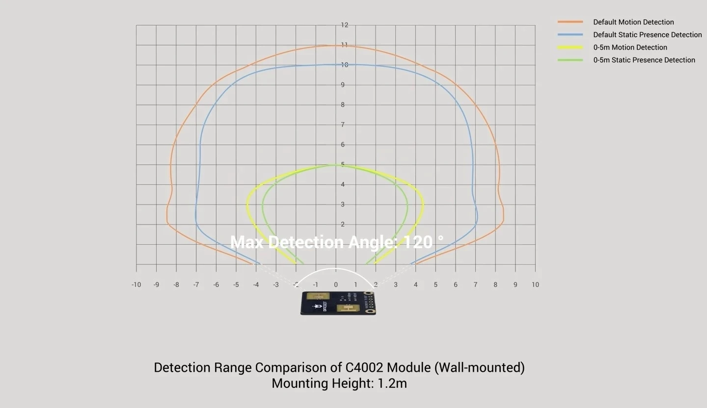 Unlike passive sensors with fixed ranges, the C4002 offers a software-configurable detection distance. This capability allows for precise matching of the sensor's coverage to the physical room layout.