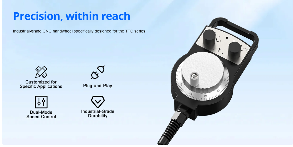 Twotrees CNC MPG Handwheel is a dedicated manual pulse generator designed for precise manual control of CNC machines in the TTC series. It enables smooth and accurate axis jogging making machine setup tool positioning and fine adjustments easier and safer during operation.