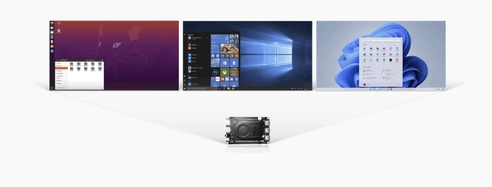 The LattePanda 3 Delta x86 single board computer has three video outputs: HDMI, Type C, and eDP, which all support dual 4K HDR. This not only provides the display of high-definition and realistic visuals, but it can also support many displays, either exhibiting the same content together or presenting distinct content.