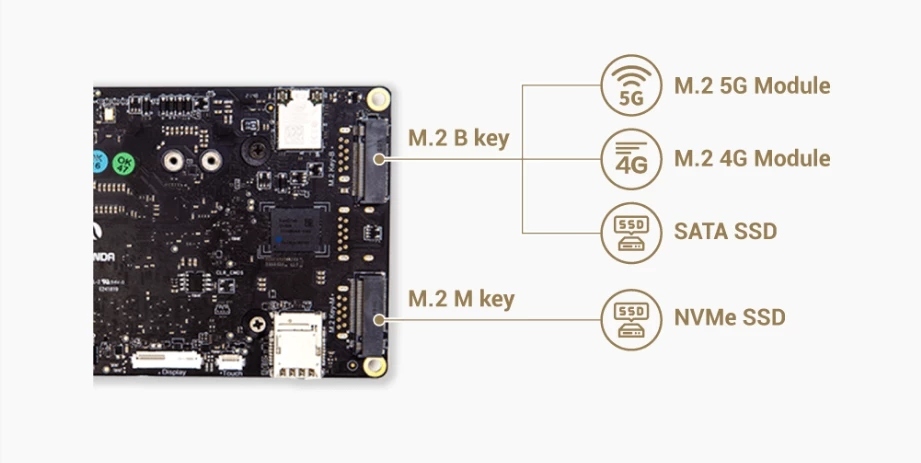 In addition, LattePanda 3 Delta x86 SBC features M.2 B Key and M.2 M Key slots, allowing for the expansion of M.2 NVMe or SATA SSDs as well as 4G/5G communication modules.