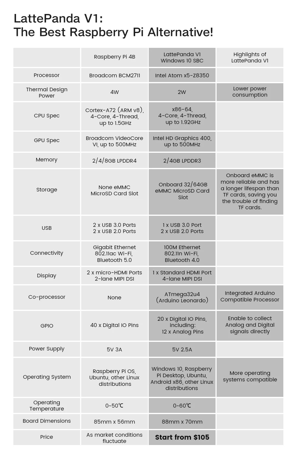 Due to the global shortage of Raspberry Pi, if you're looking for a Raspberry Pi replacement, we've got you covered: LattePanda V1. It can do all of the same functions as the Raspberry Pi 4B, and it also supports the Windows 10 operating system. In the current situation, when Raspberry Pi 4B is out of supply and prices are skyrocketing, LattePanda V1 is the greatest option!