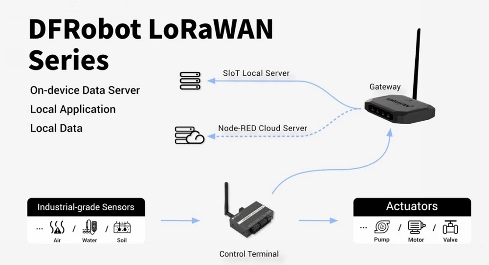 The DFRobot LoRaWAN product series focuses on "simplified development and efficient deployment," addressing situations such as learning, development, testing, and deployment while also providing developers with comprehensive low-power wide-area network (LPWAN) solutions.