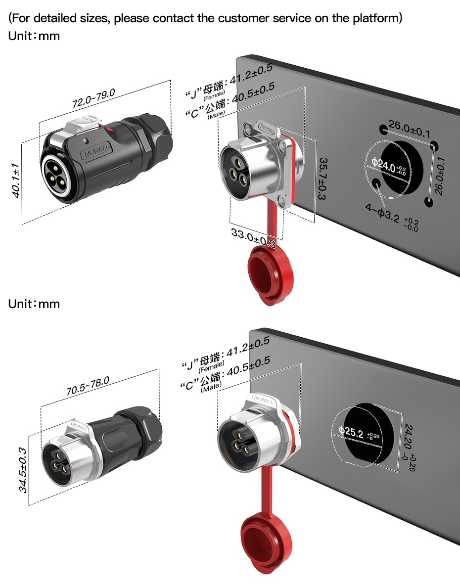 The LP-24 3Pin 45A Industrial Circular Plastic Waterproof Power Connector is engineered to deliver powerful, stable, and secure electrical connections in demanding industrial and outdoor environments. With a 3-pin configuration and a rated current capacity of up to 45A, this connector ensures high-performance conductivity for heavy-duty power systems. The rugged plastic housing, combined with an IP68 waterproof rating, provides complete protection against dust, moisture, and harsh environmental conditions. Designed with a reliable threaded locking system, it guarantees a tight and vibration-resistant connection, making it ideal for use in industrial automation, LED lighting systems, marine equipment, and renewable energy applications.