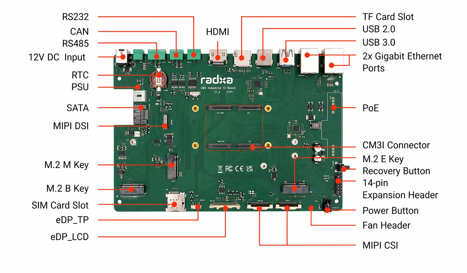 The CM3I IO Board is a well-designed application board tailored for the Radxa CM3I, offering extensive connectivity and expansion capabilities. It is well-suited for embedded systems, industrial automation, edge computing, and IoT deployments where multiple interfaces and reliable performance are required.