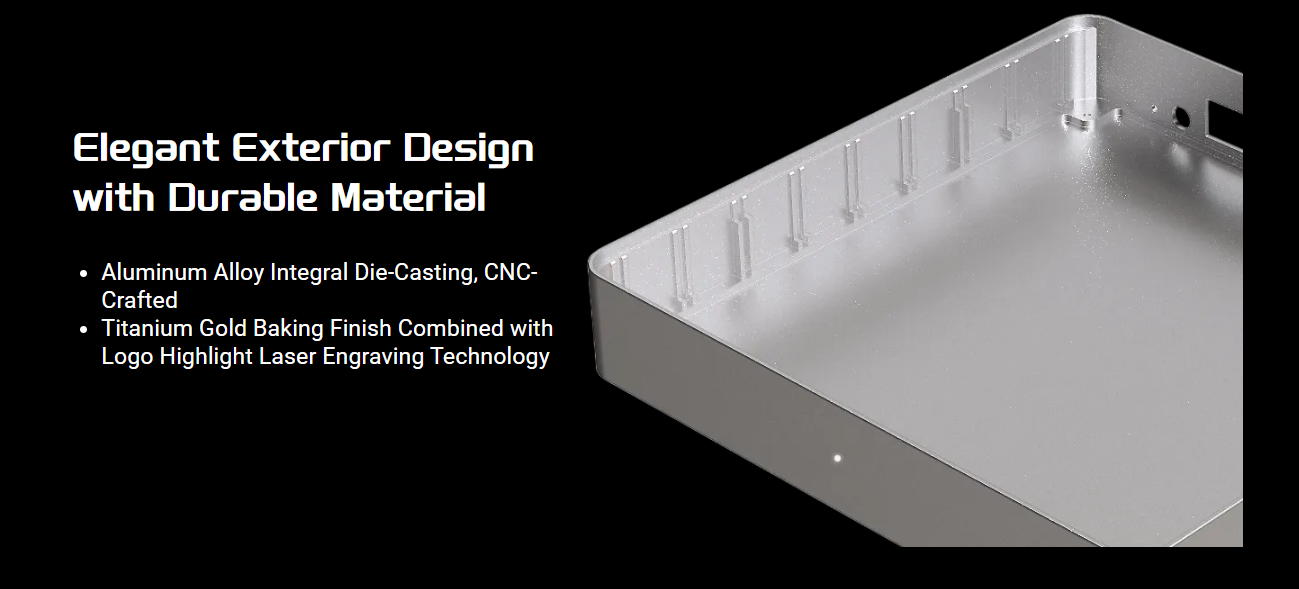 The Radxa Orion O6 AI PC Case Kit is a precision-engineered enclosure designed specifically for the Radxa Orion O6 Development Kit, offering a premium build and enhanced thermal performance. Crafted using aluminum alloy with integral die-casting and CNC machining, the case delivers durability, structural rigidity, and an elegant titanium gold finish. Laser-engraved branding adds a refined touch, making it suitable for professional and industrial environments.