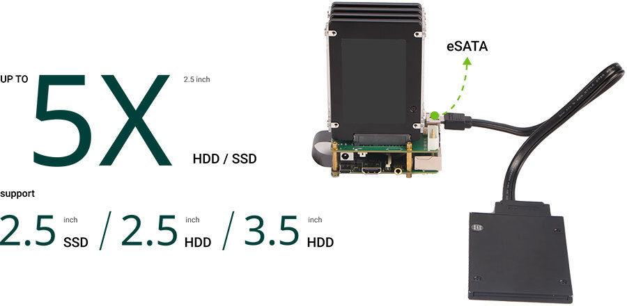 Transform Your Raspberry Pi or Radxa ROCK Series into a Powerful NAS Server: Elevate your storage solutions with the Penta SATA HAT, a robust and versatile accessory perfectly compatible with Radxa ROCK Series and Raspberry Pi. Designed to provide a seamless NAS experience, this solution supports up to 5 hard drives, delivering exceptional performance and reliability. Whether you are a tech enthusiast or a professional seeking efficient storage management, the Penta SATA HAT offers the flexibility and scalability you need.