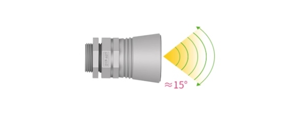 The sensor has a 15° field of vision (FOV), resulting in a narrow beam angle that is appropriate for sensing obstructions in tight places. This narrow beam angle reduces interference from adjacent objects, resulting in accurate observations.