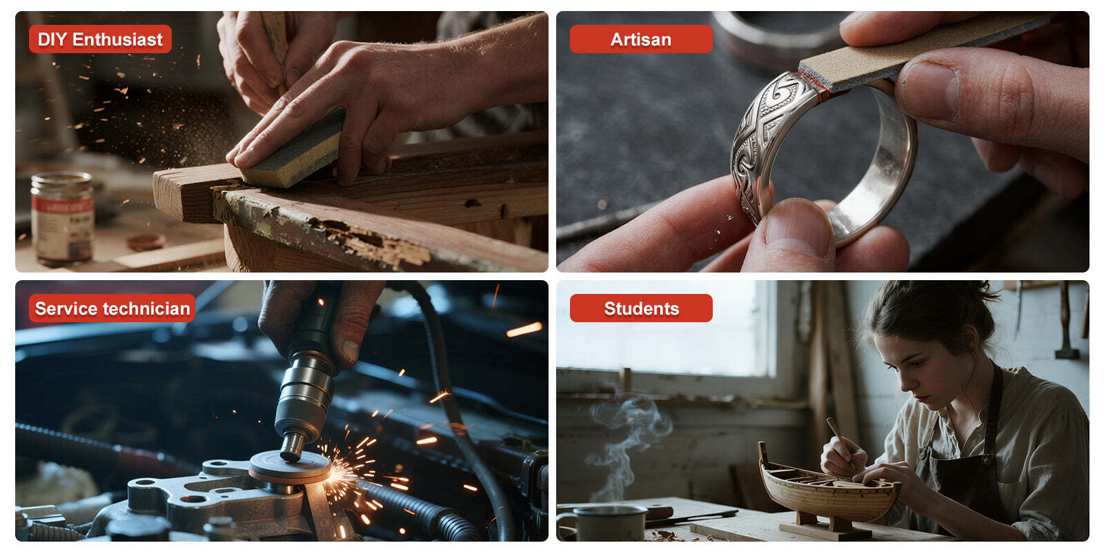 The Twotrees Mini Sander is built for multi-purpose material processing in compact workshops, repair benches, model making, and DIY fabrication. It helps remove burrs, smooth welded seams, refine edges, and polish wooden surfaces with better control and less manual effort. With a 200W motor and up to 8500 RPM stepless speed control, it supports consistent finishing across metal, wood, plastic, and general workshop materials.