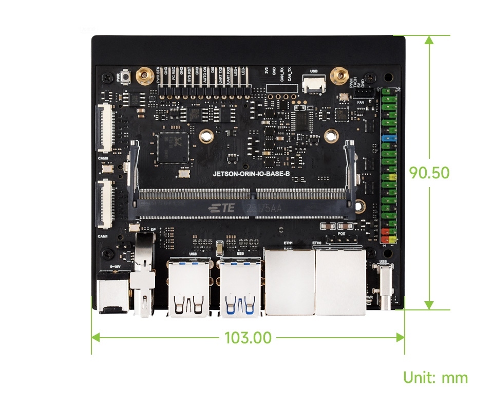 The Waveshare Jetson Orin Nano Ethernet Base Board is a high-performance carrier board designed to support NVIDIA Jetson Orin Nano and Orin NX modules, enabling developers to build compact, powerful, and AI-driven embedded systems. Engineered for advanced computing, robotics, computer vision, and AI applications, this base board provides dual high-speed Ethernet ports, extensive I/O interfaces, and versatile expansion options — all in a stable, efficient design.